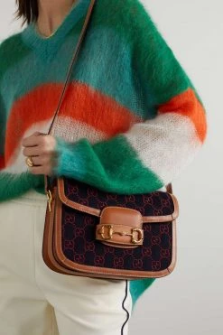 GUCCI Horsebit 1955 Schultertasche Aus Woll-Jacquard Mit Lederbesätzen ,Blau
